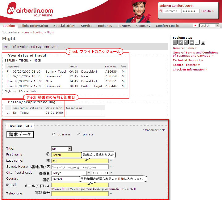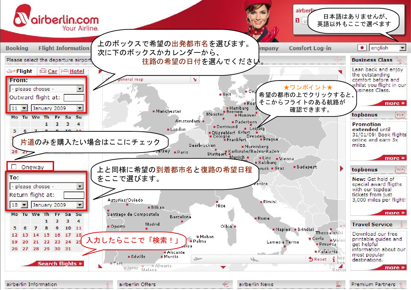 エアベルリン/Airberlin ウェブ予約日本語ガイド