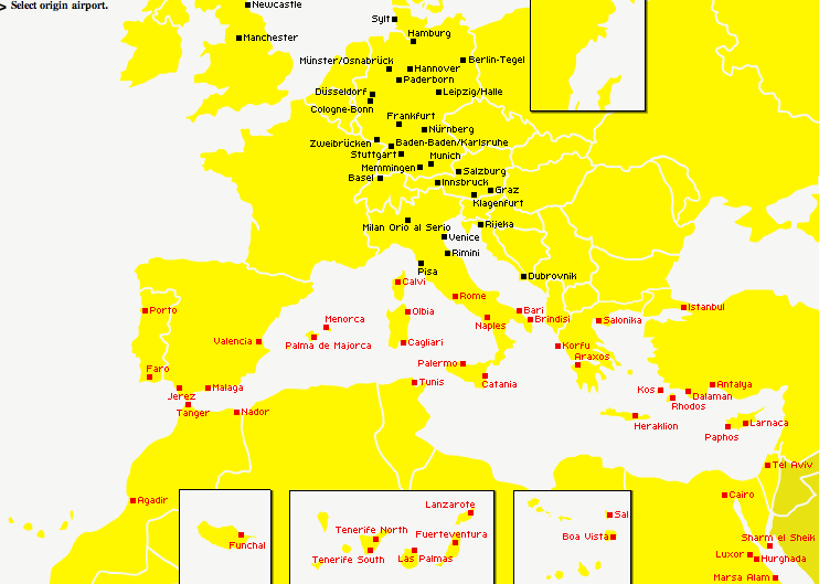 路線数は多いが、ドイツのコロン、ハノーバーから、地中海や大西洋の島々、エーゲ海への中・長距離路線が主。