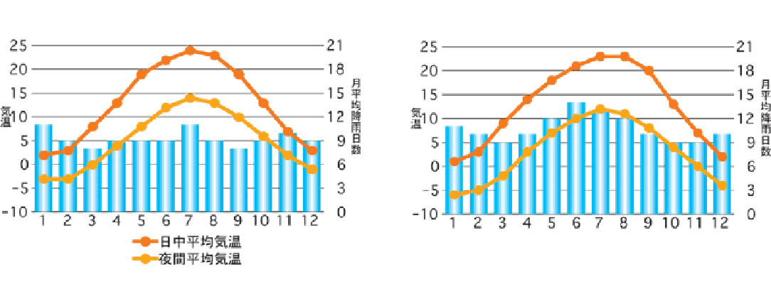 カンタブリア海沿岸は雨が多く、夏は涼しく冬は温暖な海洋性気候。マドリッドを中心とした中央部は、