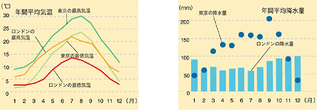 ロンドンと東京の気温 ロンドンと東京の降水量